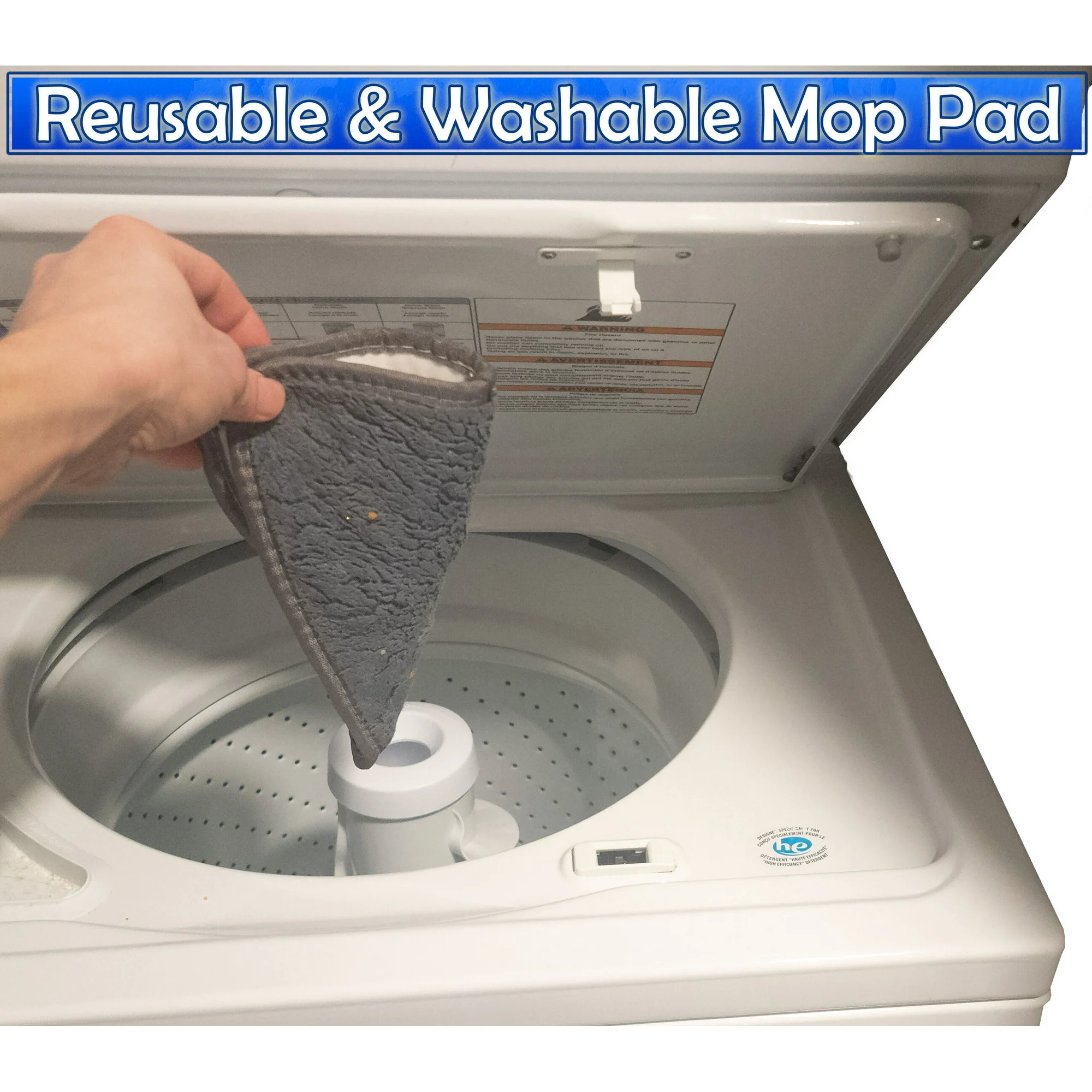 WASHABLE & REUSABLE MOP CLOTH: Save money with this mop’s reusable chenille cloth + fiber cloth pads, which are machine washable. Simply put them in the washing machine after use.