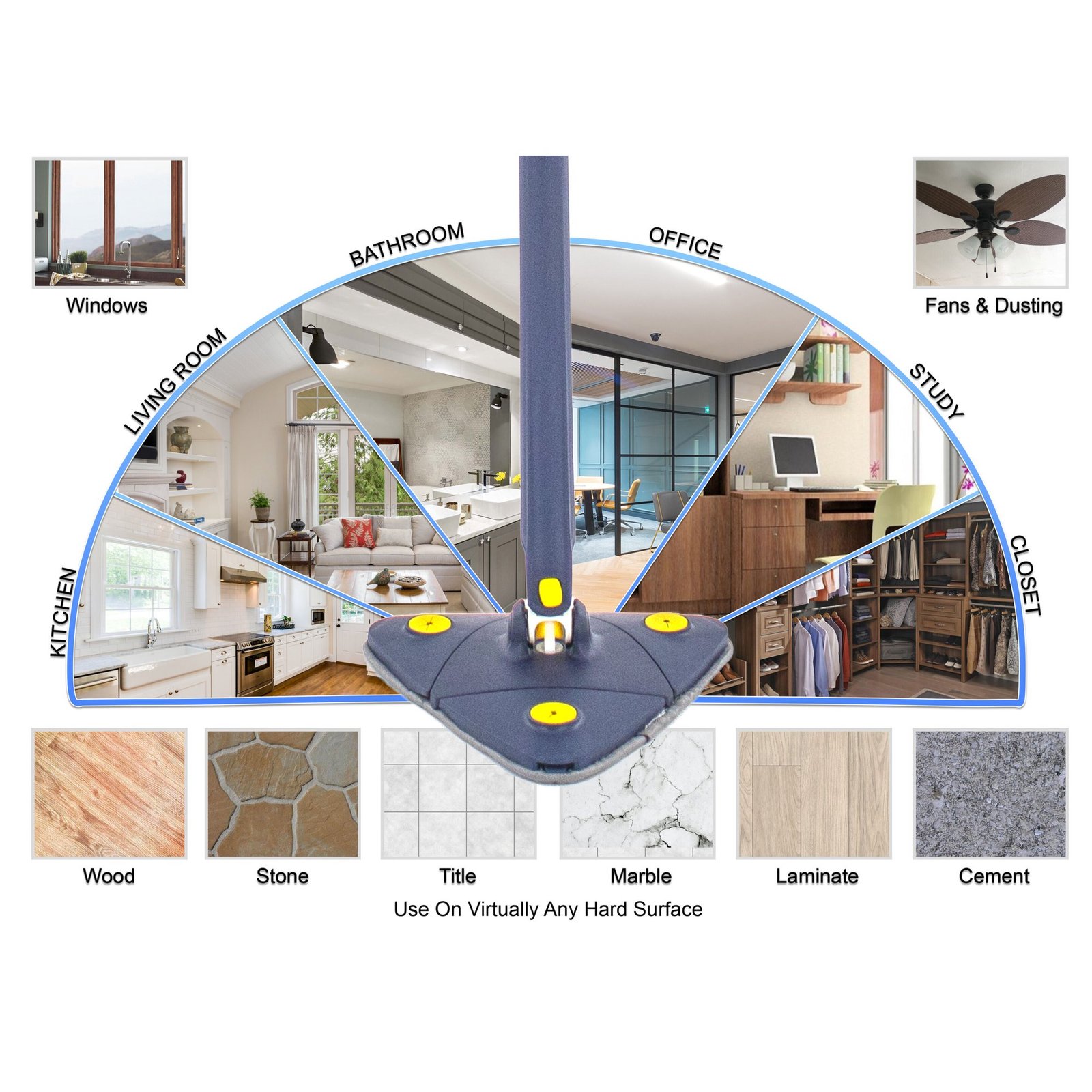 360° SWIVEL FLAT MOP REACHES FOR EVERY CORNER: Clean every corner with ease thanks to this mop’s 360° swivel head and slim, low-profile design. The Triangle Shape design allows you to effectively clean in tight spaces and hard-to-reach areas.